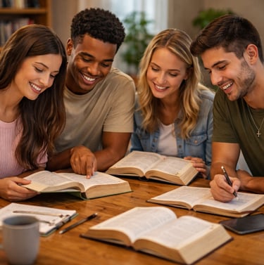 Recibirás una biblioteca espiritual completa, compuesta por estudios visuales, devocionales y explicaciones versículo por versículo de los principales libros de la Biblia:
