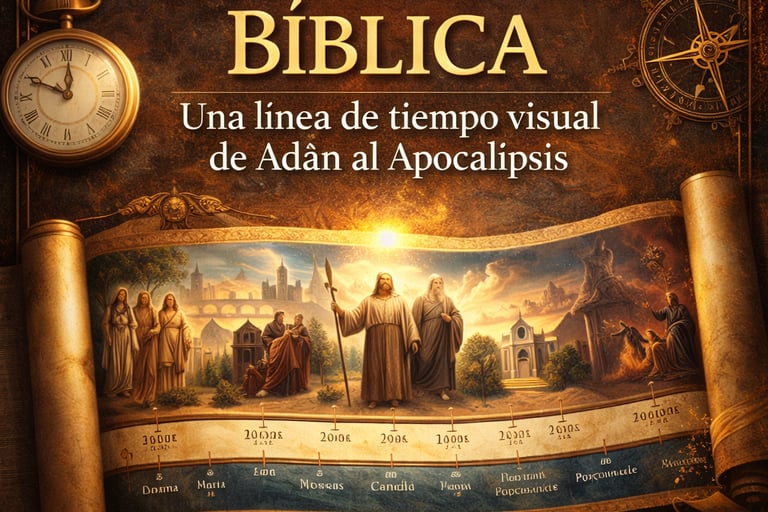 Descubre la cronología bíblica de manera clara y visual, desde Adán hasta el Apocalipsis. Este ebook te guía a través de los principales personajes y evento historia sagrada.